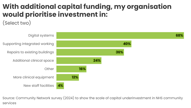 Forty per cent of respondents to our survey said investment to support integrated working was their number one priority. With further investment, community provider leaders are keen to focus on scaling up digital solutions and integration and driving forward government ambitions for the health and care system.