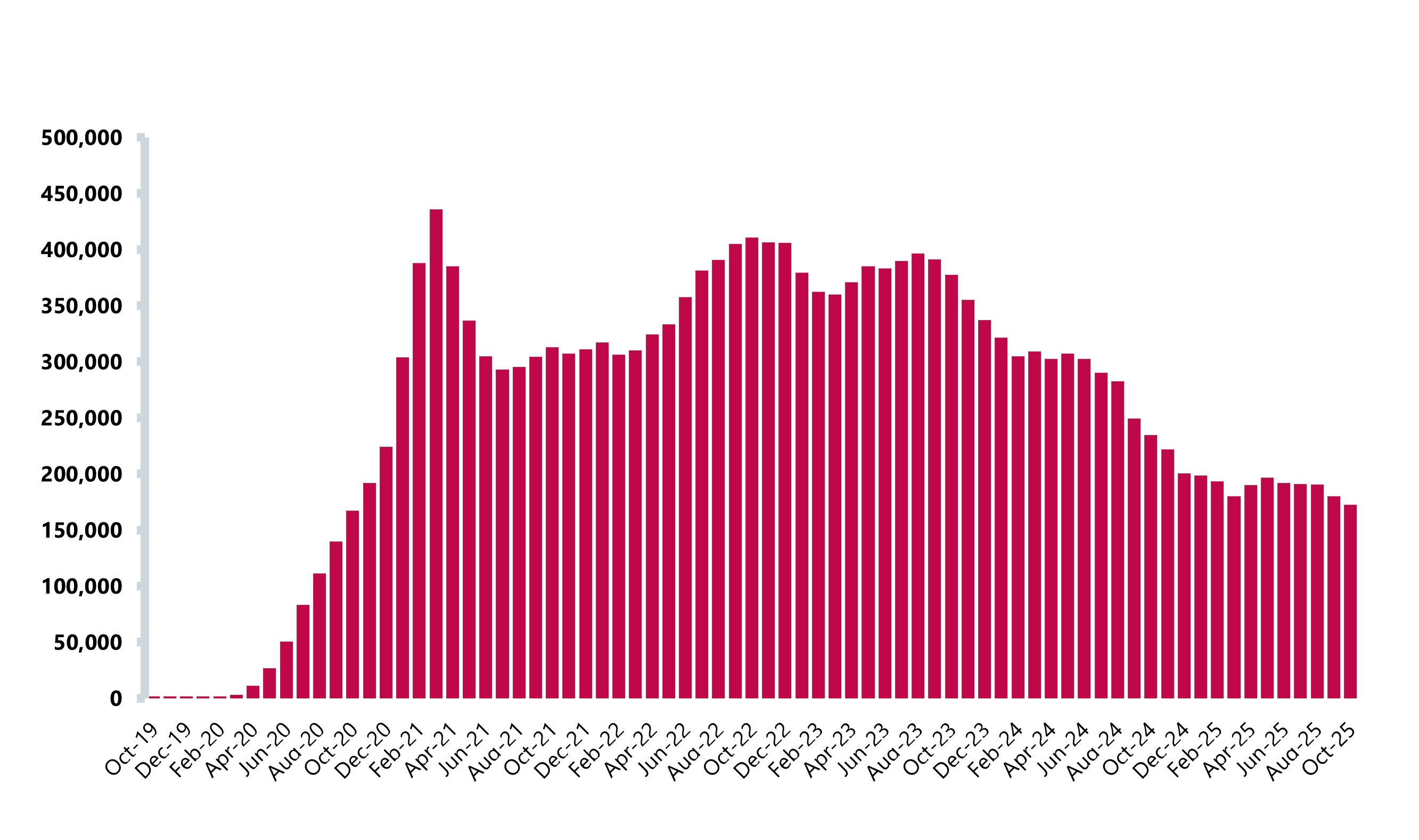 - The size of the waiting list rose by 6,000 cases to 7.4 million in October. This is 145,900 fewer cases than last year but the list remains significantly elevated compared to before the pandemic (2.8 million more cases than in October 2019).