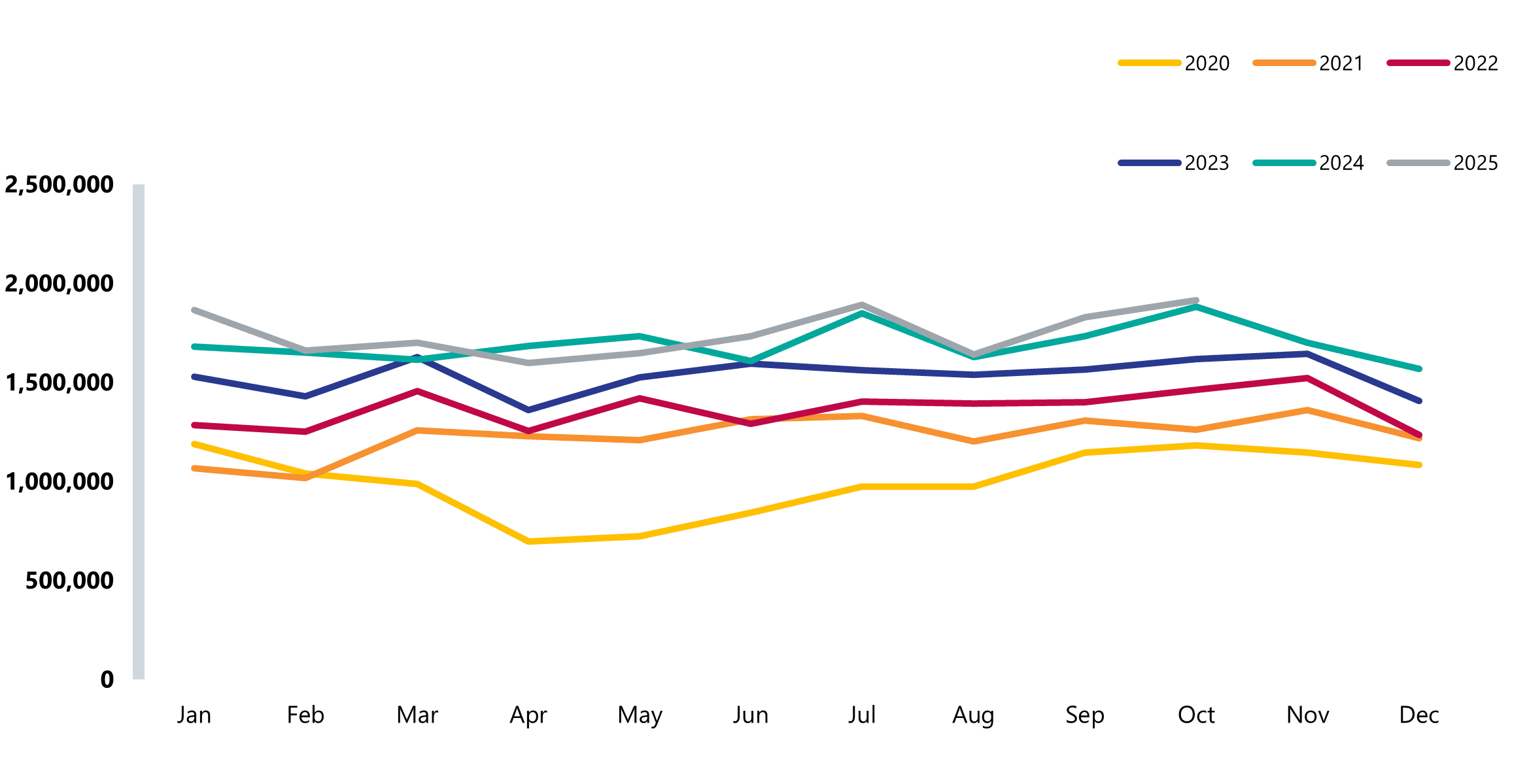 - There were 1.92 million referrals received to community services (as shown in Figure 5), 1.9% higher than October 2024.