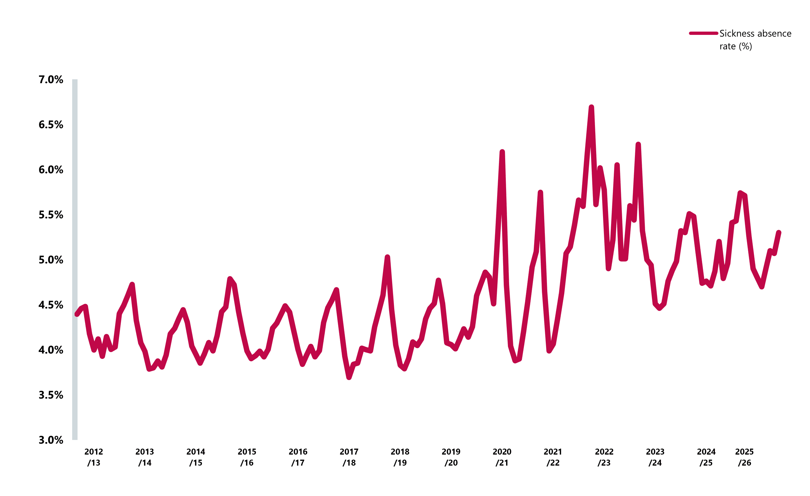 - The sickness absence rate was 5.3% in September 2025, slightly higher than September 2024 (5%).
